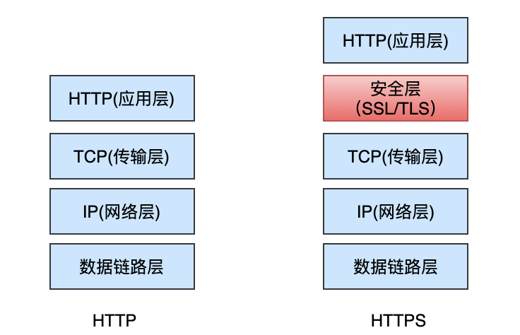 HTTPS并非是应用层一个新的协议,通常 HTTP 直接和 TCP 通信,HTTPS则先和安全层(SSL/TLS)通信,然后安全层再和 TCP 层通信。
