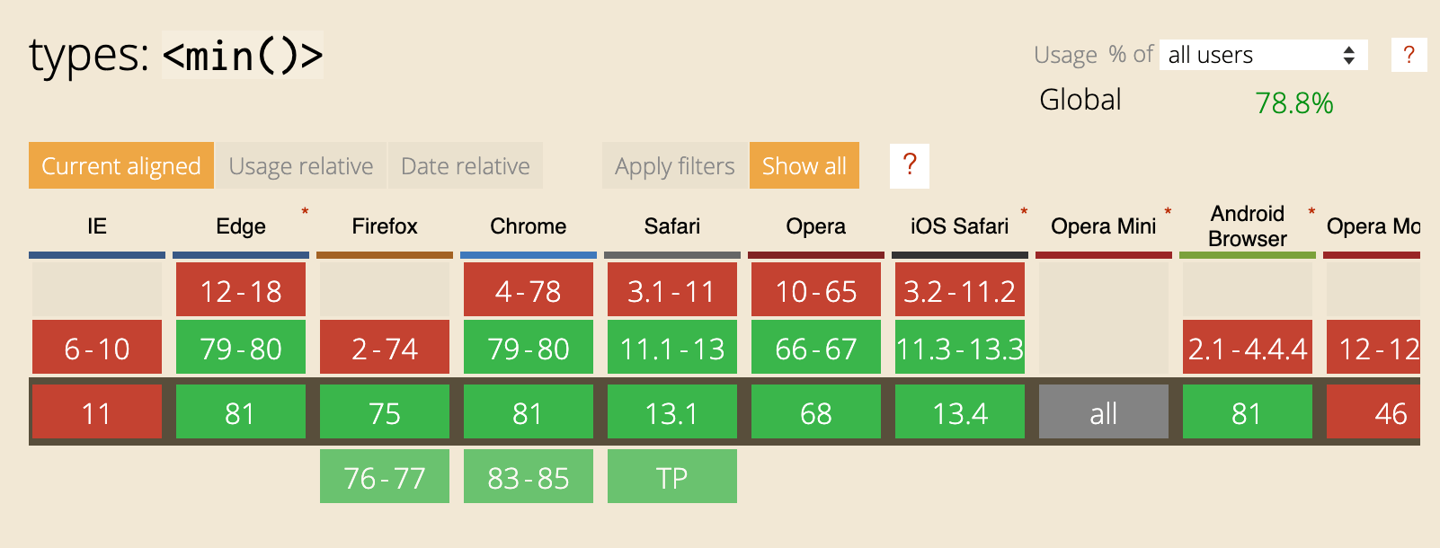 2020年4月8日,Firefox浏览器支持了 CSS 比较函数(min(),max(),clamp()),这意味着现在所有主流浏览器都支持它们。 这些CSS函数最大的作用就是可以为我们提供动态布局和更灵活设计组件方法。