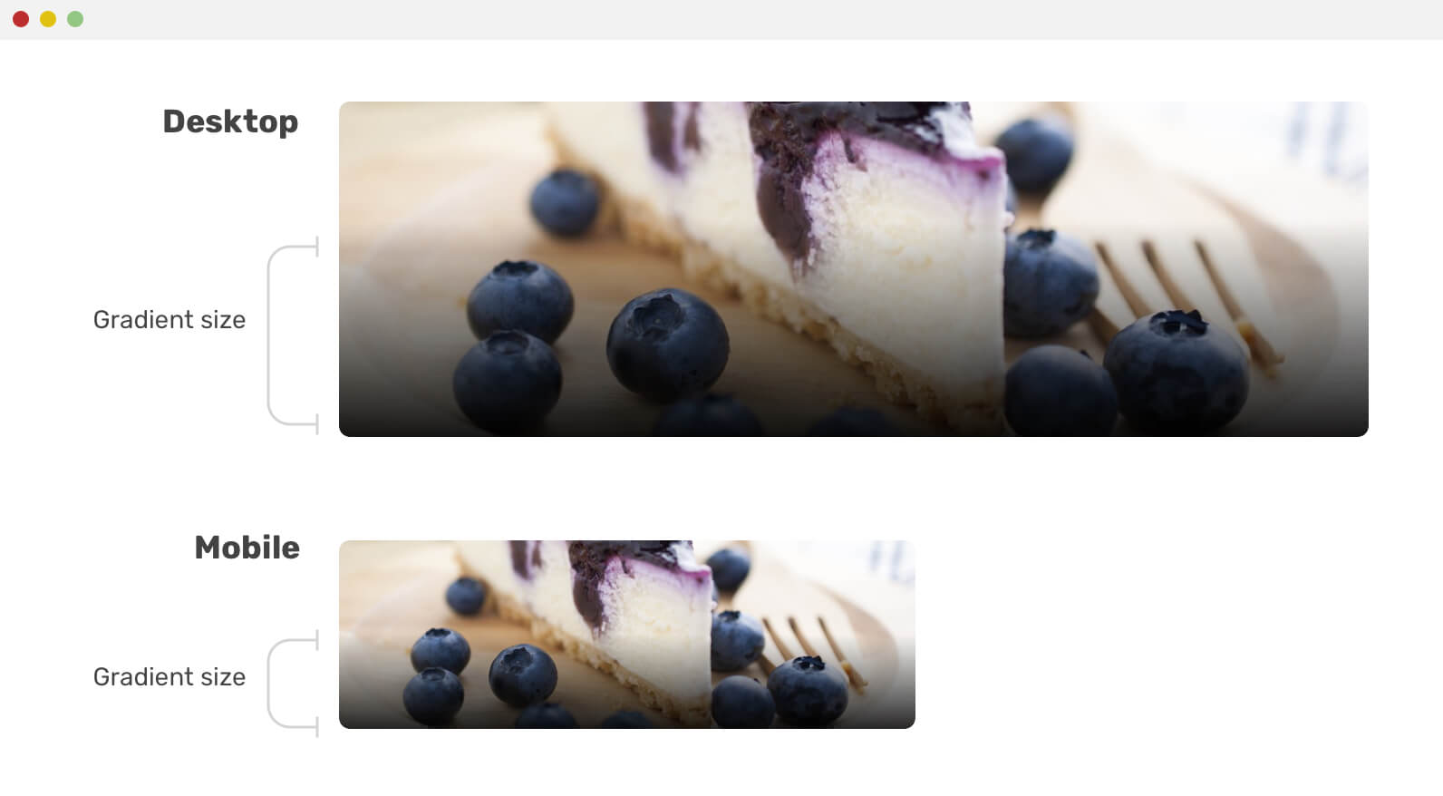当需要在图片上放置文本时,我们应该在图片上加层渐变让文本更加可读。与上一个示例类似,渐变大小应该在小视图和大视图之间有所不同。见下图: