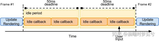 rIC的回调,而且可能会长期的推迟下去。所以如果你需要保证你的任务在一定时间内一定要执行掉,那么你可以给rIC传入第二个参数timeout。 这会强制浏览器不管多忙,都在超过这个时间之后去执行rIC的回调函数。所以要谨慎使用,因为它会打断浏览器本身优先级更高的工作。 - 最长期限为 50 毫秒,是根据研究得出的,研究表明,人们通常认为 100 毫秒内对用户输入的响应是瞬时的。 将闲置截止期限设置为 50ms 意味着即使在闲置任务开始后立即发生用户输入,浏览器仍然有剩余的 50ms 可以在其中响应用户输入而不会产生用户可察觉的滞后。